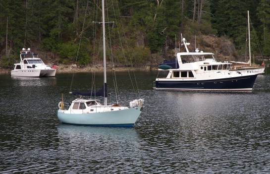 Twenty years ago when I cruised the west coast of Britain in an open-deck Wharram catamaran, I probably saw as many recreational boats in 3 months than I did in a day in Desolation Sound.